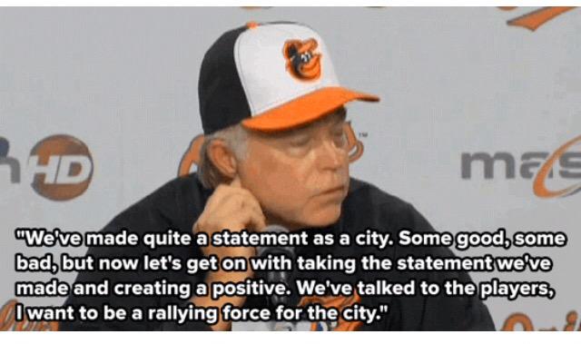 Orioles manager Buck Showalter reflects on unrest in Baltimore